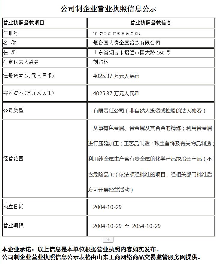 煙臺(tái)國(guó)大貴金屬冶煉有限公司